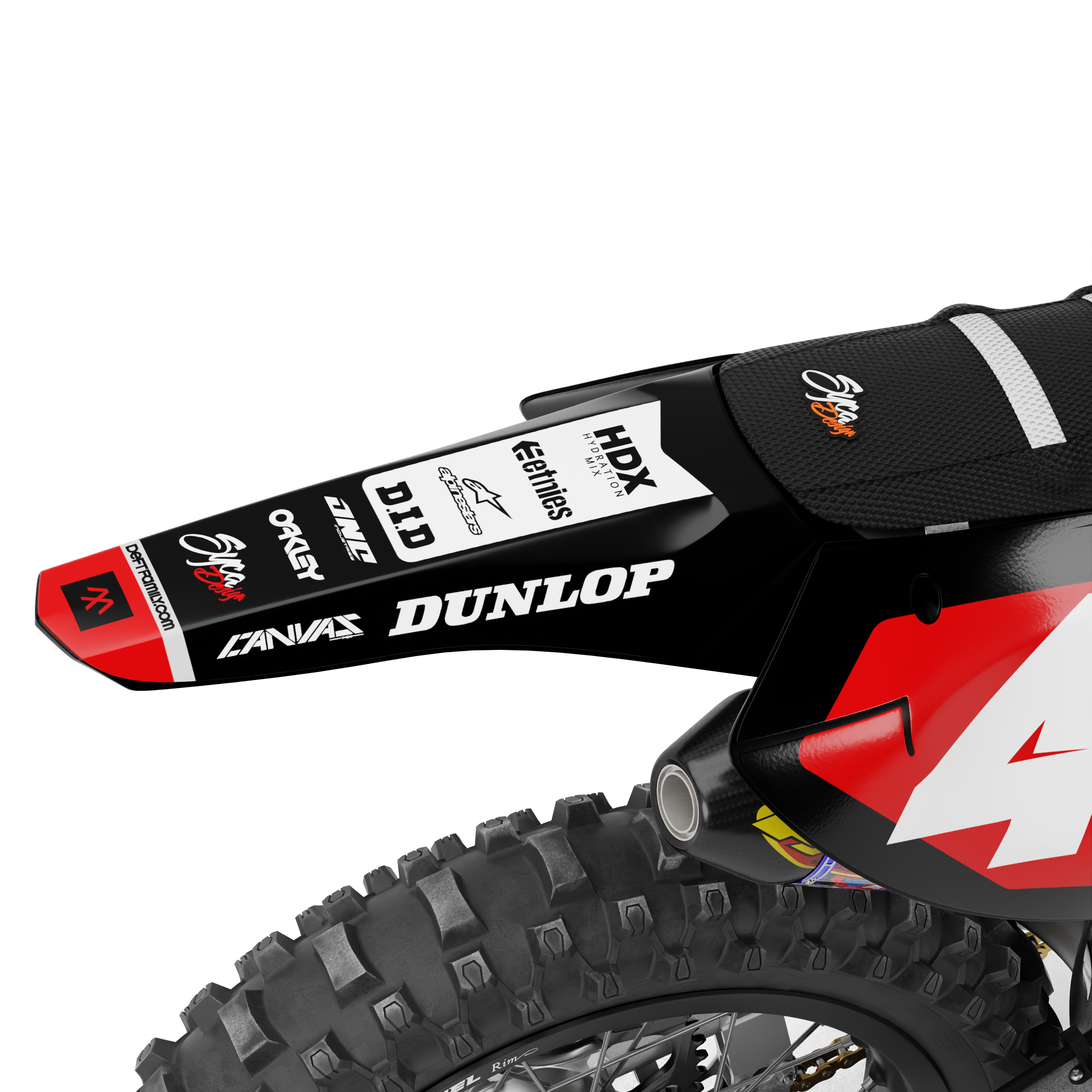 Houd er rekening mee dat merkgebonden kleuren, zoals Honda Rood, KTM Oranje en Yamaha Blauw, iets kunnen afwijken van de kleur van het plastic. Dit komt doordat chromeprints afhankelijk van de lichtinval subtiele tinten en reflecties kunnen vertonen.